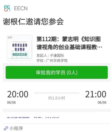 报名截止时间之后,我们根据报名次序,在小程序中审核、确定前7名为本期讲座会议会员。