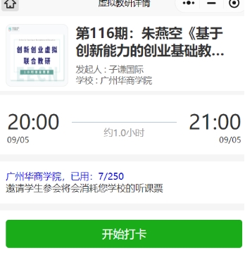 为进一步落实学校创新创业教育改革相关政策,依据本科教学评估指标要求,进一步探索专创融合教学改革路径,我院(中心)联合中国创业教育工作者网络(EECN),在本学年每周为学校不同专业教师安排一次专创融合教学培训活动,培训采用在线虚拟教研室的形式开展,培训时间为每周四晚20:00-21:00。希望各位老师积极报名参加,并在培训活动后发送一张观看讲座视频的照片、一张讲座界面截图到邮箱xiegenren@163.com。