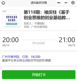 为进一步落实学校创新创业教育改革相关政策,依据本科教学评估指标要求,进一步探索专创融合教学改革路径,我院(中心)联合中国创业教育工作者网络(EECN),在本学年每周为学校不同专业教师安排一次专创融合教学培训活动,培训采用在线虚拟教研室的形式开展,培训时间为每周四晚20:00-21:00。希望各位老师积极报名参加,并在培训活动后发送一张观看讲座视频的照片、一张讲座界面截图到邮箱xiegenren@163.com。