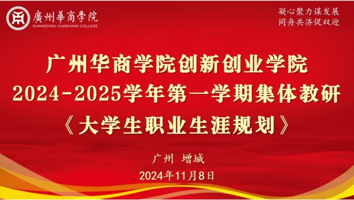 2024年11月8日下午,广州华商学院创新创业学院开展《大学生职业生涯规划》课程线上集体教研活动。学生就业创业处副处长宋元跃、创新创业学院院长助理谢根仁,各二级学院职业规划大赛负责人员以及学生职业生涯规划与就业创业指导教研室全体教师参加了本次集体教研活动。