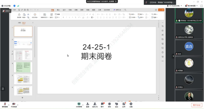 为全面加强教学质量管理,确保课程考核、试卷评阅与归档工作的规范性、准确性和高效性,推进本科教学工作合格评估内涵建设,2025年1月8日晚上,广州华商学院创新创业学院通过腾讯会议召开试卷标准化管理线上培训会议,学生就业创业处副处长、创新创业学院副院长宋元跃、创新创业学院院长助理谢根仁、华商学生职业生涯规划与就业创业指导教研室主任高艳锋、创新创业学院全体任课教师参加本次会议。