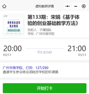 为进一步落实学校创新创业教育改革相关政策,依据本科教学评估指标要求,进一步探索专创融合教学改革路径,我院(中心)联合中国创业教育工作者网络(EECN),在本学年每周为学校不同专业教师安排一次专创融合教学培训活动,培训采用在线虚拟教研室的形式开展,培训时间为每周四晚20:00-21:00。希望各位老师积极报名参加,并在培训活动后发送一张观看讲座视频的照片、一张讲座界面截图到邮箱xiegenren@163.com。