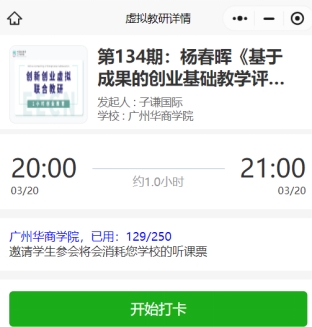 为进一步落实学校创新创业教育改革相关政策,依据本科教学评估指标要求,进一步探索专创融合教学改革路径,我院(中心)联合中国创业教育工作者网络(EECN),在本学年每周为学校不同专业教师安排一次专创融合教学培训活动,培训采用在线虚拟教研室的形式开展,培训时间为每周四晚20:00-21:00。希望各位老师积极报名参加,并在培训活动后发送一张观看讲座视频的照片、一张讲座界面截图到邮箱xiegenren@163.com。