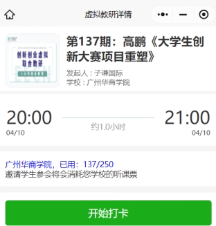 讲座开始前,审核通过的报名者点击微信群里的报名邀请小程序,出现以下页面(历史样例):