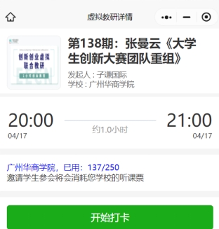 讲座开始前,审核通过的报名者点击微信群里的报名邀请小程序,出现以下页面(历史样例):