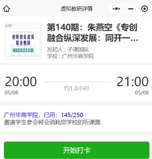 为进一步落实学校创新创业教育改革相关政策,依据本科教学评估指标要求,进一步探索专创融合教学改革路径,我院(中心)联合中国创业教育工作者网络(EECN),在本学年每周为学校不同专业教师安排一次专创融合教学培训活动,培训采用在线虚拟教研室的形式开展,培训时间为每周四晚20:00-21:00。希望各位老师积极报名参加,并在培训活动后发送一张观看讲座视频的照片、一张讲座界面截图到邮箱xiegenren@163.com。