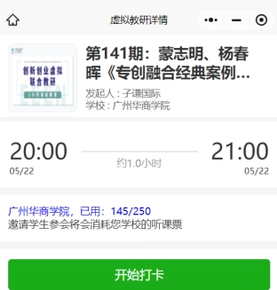 为进一步落实学校创新创业教育改革相关政策,依据本科教学评估指标要求,进一步探索专创融合教学改革路径,我院(中心)联合中国创业教育工作者网络(EECN),在本学年每周为学校不同专业教师安排一次专创融合教学培训活动,培训采用在线虚拟教研室的形式开展,培训时间为每周四晚20:00-21:00。希望各位老师积极报名参加,并在培训活动后发送一张观看讲座视频的照片、一张讲座界面截图到邮箱xiegenren@163.com。