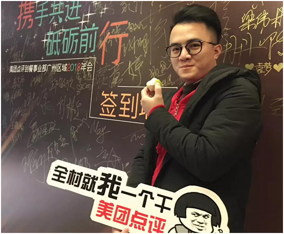 大学毕业后,他加入了美团点评,开始了他的第一份工作——美团到店餐饮广深区域增城站业务经理。在美团的工作中,他渐渐消除了自我膨胀,通过不断的奋斗,在岗位中崭露头角。而后几年,他也通过自身的努力在美团中晋升轮岗,获得了不错的成绩。