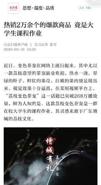 目前这款茶宠的市场反响非常不错,中国日报、北京日报、增城电台各大媒体对我们团队以及产品都有进行过报道,以及增城旅游局、商务局、新塘镇政府还有各种电商平台都有和我们合作,这是对我们产品的肯定也是对中国原创设计的支持,市场上也得到了很多用户的好评反馈。