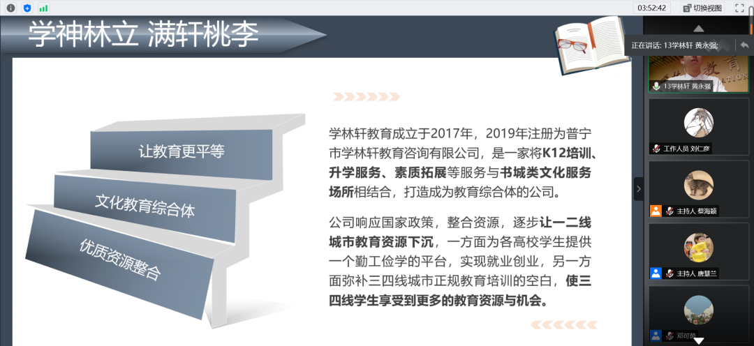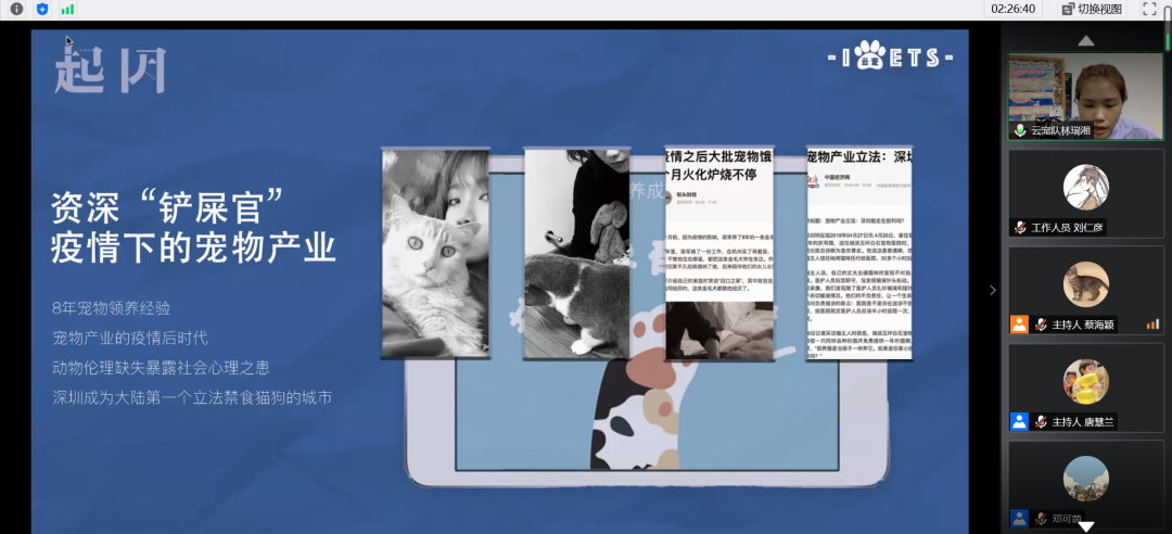 决赛分为两个赛道,其中高教主赛道14支队伍,“青年红色筑梦之旅”赛道6支队伍。比赛采用公开答辩的形式,入围的20支队伍先后进行PPT展示并接受评委的提问。
