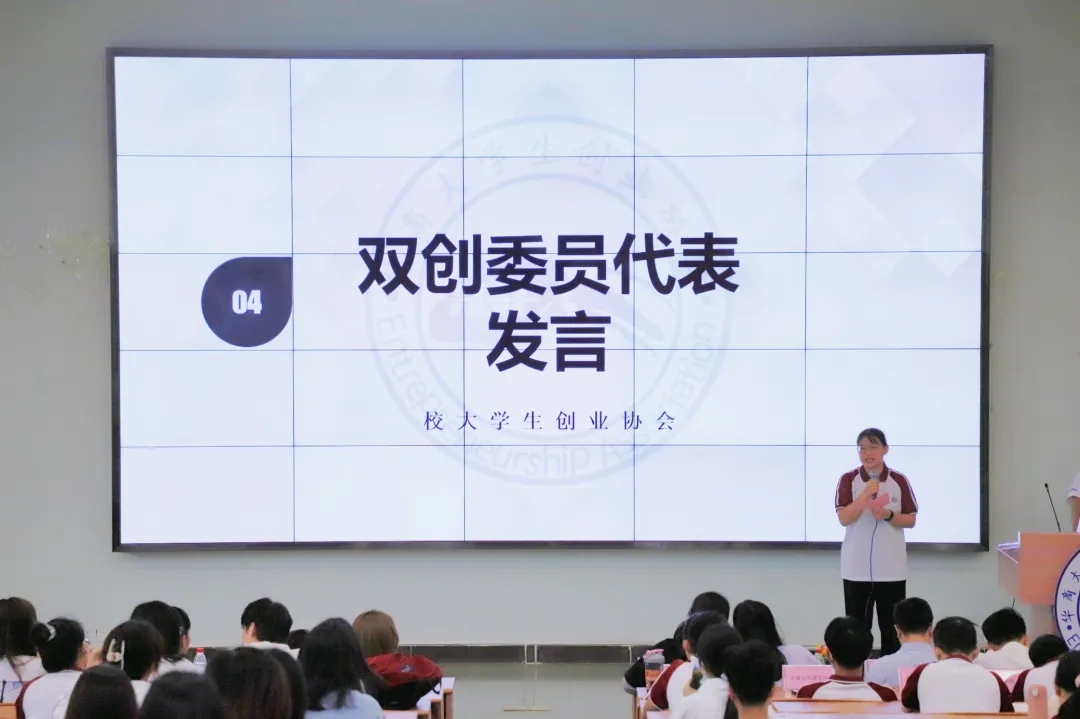 陈纯露同学本次演讲主要围绕以下四个方面:创协宗旨、创协品牌活动、双创委员的职能以及双创委员的奖励机制。另外,她还激励各班双创委员,踊跃带动身边的同学积极参加各类创新创业比赛。