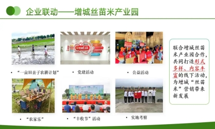 该项目从初期开始就充分利用所在区域资源优势,与广东省广州市增城区朱村丝苗米产业园达成战略合作关系,全力打造增城“丝苗米”IP,依托各大社交软件及电商平台,例如抖音、快手、小红书、微信公众号、视频号等,打造一套完整的新媒体矩阵,助力增城丝苗米出圈。同时,通过丰富的丝苗米文创产品,提升增城丝苗米的知名度,加快推进丝苗米的销售。
