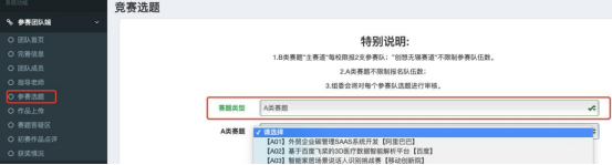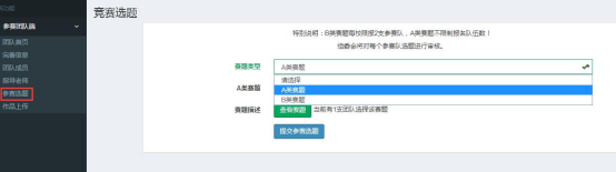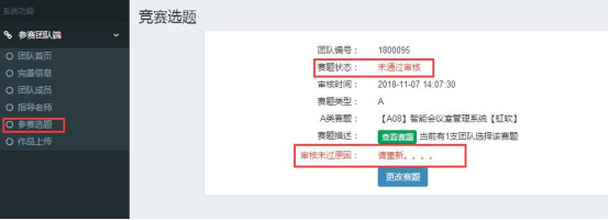 4.点击“参赛选题”进行选题,并在该页面查看审核状态,如下图示: