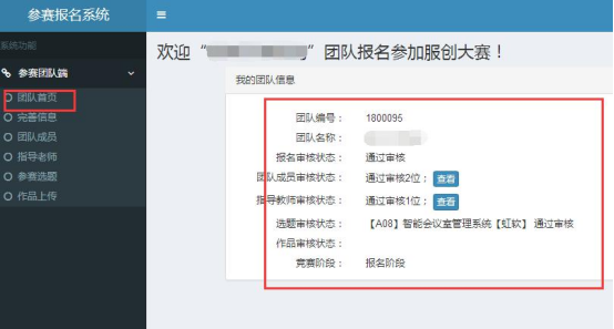5.团队可在“团队首页”查看团队相关信息审核状态,但需在各栏目内才可查看更详细信息,尤其是当审核未通过时,未通过原因需在各栏目内才可查看。