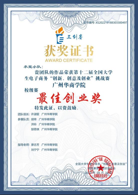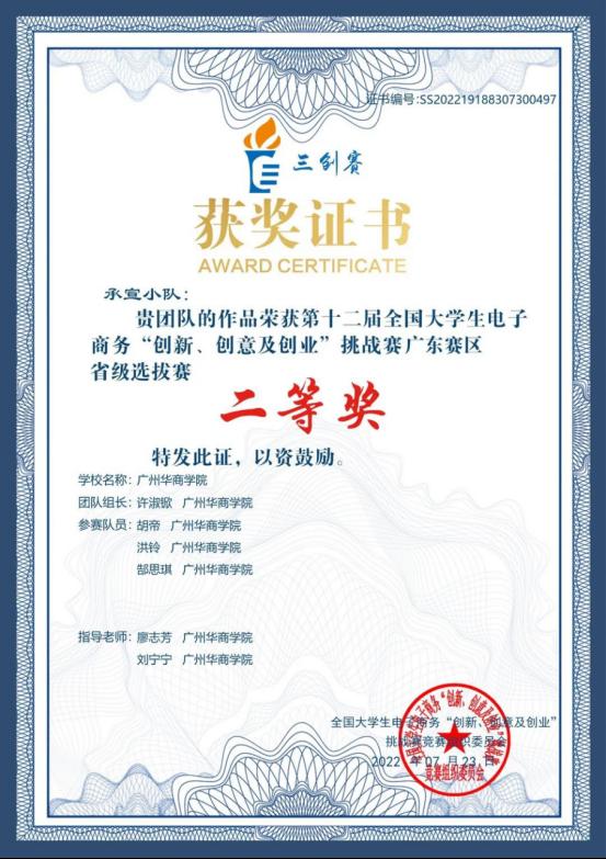 荣获第十二届全国大学生电子商务“创新、创意及创业”挑战赛广东赛区全省选拔赛二等奖