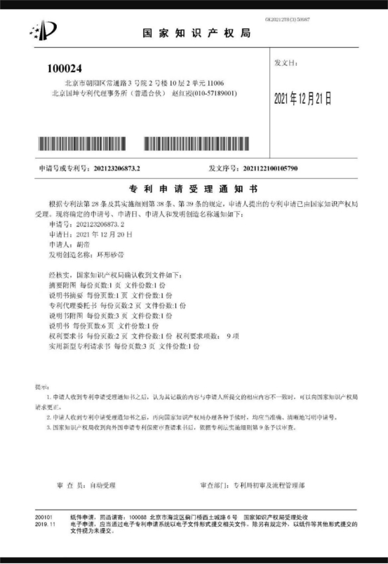公司能够根据客户所需要的尺寸个性化定制非标类砂带产品。同时强大的接口性能科研满足不同客户的使用需求。同时通过优化管理使得和技术创新,使得我们的生产周期缩短50%。目前我司最新的对接砂带技术已经向国家专利局递交专利申请,专利目前正在审核当中