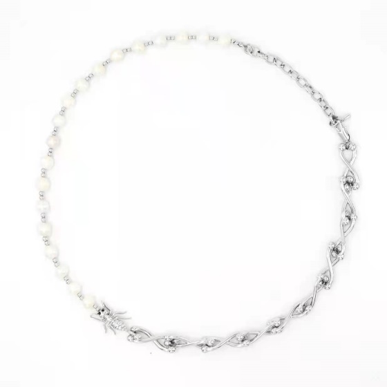 钮钉相扣极具个性,冷色金属与亮白珍珠拼接饰以蚂蚁点缀,描绘团结一致,和谐有爱的自然世界,为小昆虫赋予力量感。