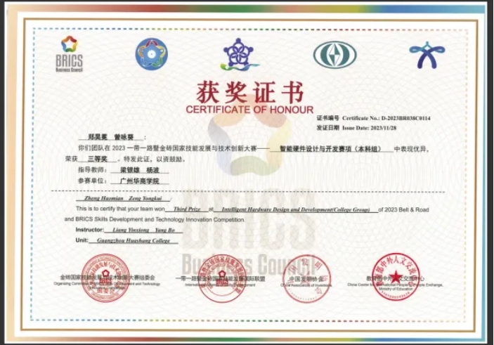 1.2023一带一路暨金砖国家技能发展与技术创新大赛-智能硬件设计与开发赛项(本科组)国赛三等奖