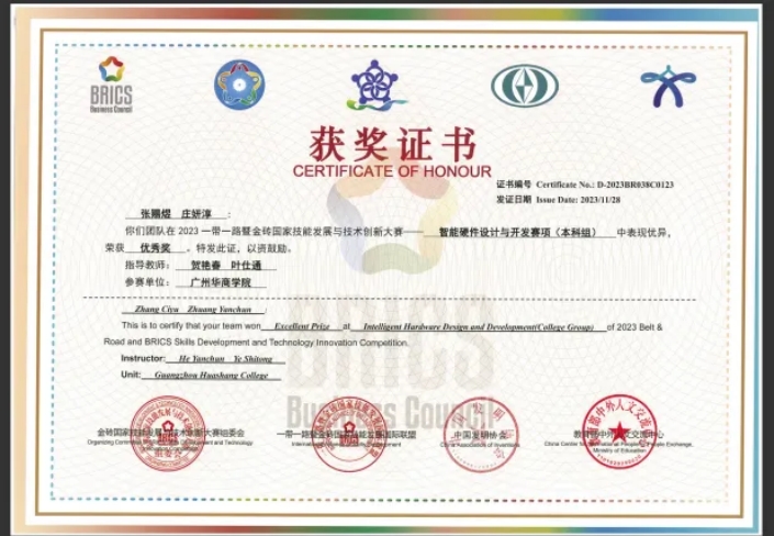 2.2023一带一路暨金砖国家技能发展与技术创新大赛-智能硬件设计与开发赛项(本科组)国赛优秀奖