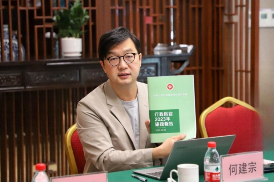 讲座伊始,何建宗博士通过介绍香港与内地的合作成功的项目、香港最近几年的改革发展,以及香港与内地之间的差异,分析了大湾区发展融合有待解决的问题。除此之外,何建宗博士还给华商青年介绍了有关香港的国际优势,他鼓励粤港澳地区的青年积极交流互动,共同说好中国故事。何建宗博士强调,大湾区在报告中的频繁出现,预示着大湾区在金融投资、应急能力等各种领域的重要性不断增强,鼓励华商青年积极为大湾区的发展贡献力量。