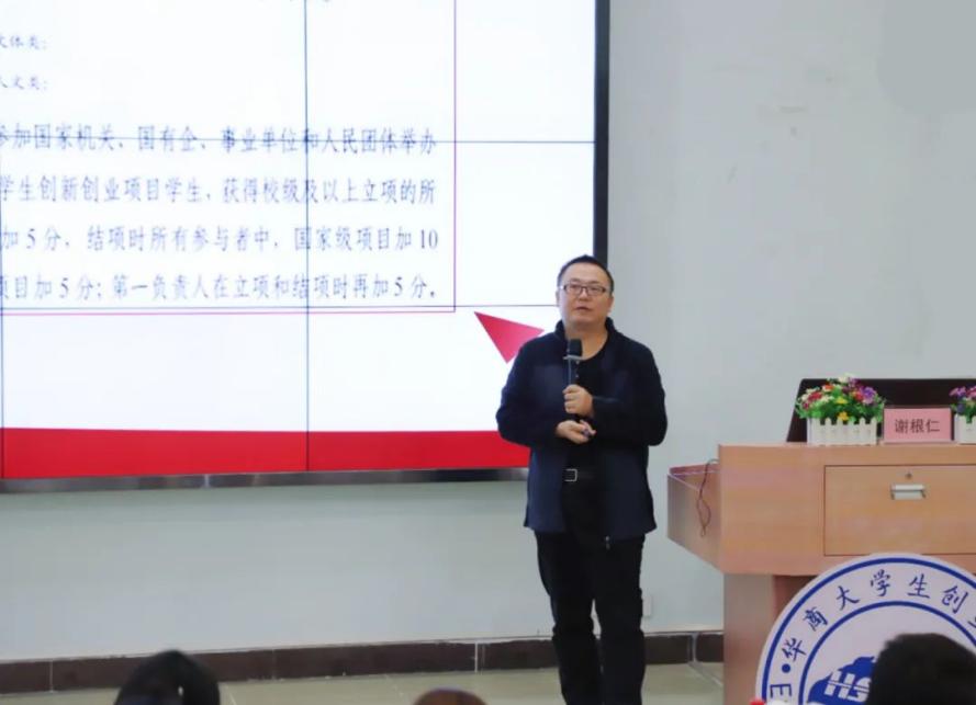 11月14日下午,广州华商学院“大学生创新创业训练计划项目解读与准备策略”讲座在广州校区励志楼C408顺利举行。本次讲座主讲人是创新创业学院创新创业教育教研室副主任谢根仁老师。莅临本次讲座的嘉宾有会计学院张含笑老师、金融学院张锐嘉老师、文学院罗婷老师、外国语学院杨舒涵老师、教师教育学院赵中宝老师以及创新创业学院陈欢老师和陈海悦老师,各班级双创委员参加本次讲座。