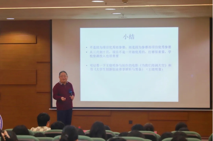 张耀辉教授还为学生贴心地讲解了参赛要诀,即“选项目,要有故事,也要有技术壁垒;创意不易证明化,最好要不可证明”。他以云南滇池的“红糖馒头”项目为例,讲解了市场调研的重要性,强调要科学地、深入地进行调研,确保为项目方案的制定具有可靠的依据。