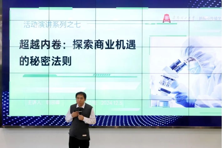 2024 年 12 月 3 日,由广州华商学院就业创业e站主办,广州华商学院学生就业创业处、广州华商学院创新创业学院、华商众创孵化基地承办,大学生创业协会协办的《超越内卷:探索商业机遇的秘密法则》主题讲座在广州校区励志楼 C408(主会场)和肇庆校区6号楼201(分会场)同步举行。
