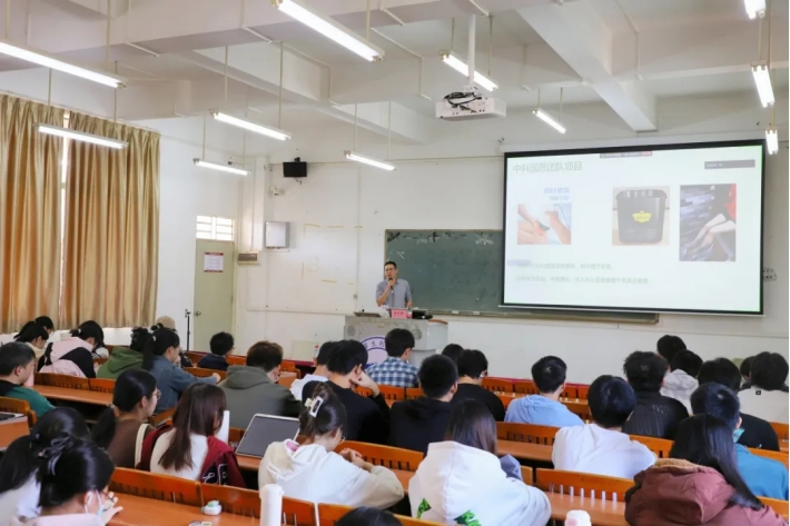 随后,郑日新博士详尽分享了其创业成果所秉持的前沿设计理念、卓越功能特质以及极具潜力的市场前景,着重凸显了自动化技术在创新创业实践中的重要应用价值。通过对案例的深度剖析与讲解,使同学们对智能餐饮和大健康这两大热门领域有了更为透彻、深入的认知与理解。他进一步指出创新与创业相互交融、协同发展所蕴含的关键要义,鼓励同学们在日常学习进程中积极主动地探寻各类创新突破点,充分施展自身的创意才华与综合能力,踊跃投身到创新创业项目之中。