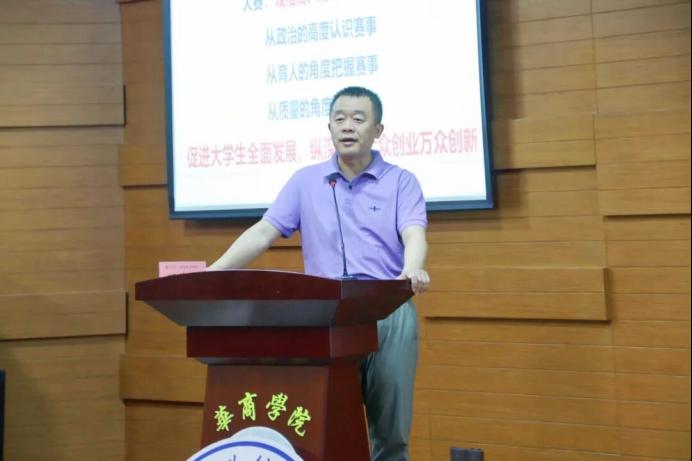 讲座伊始,顾蔚坤先生围绕大赛发展历程、赛道设置、奖项分布等内容作系统解读。他详细梳理了从校赛、省赛到国赛的完整晋级路径,对比分析主赛道、红旅赛道、产业赛道等不同赛道的名额分配与竞争特点,并结合广东省近年参赛数据及获奖情况,直观呈现赛事规模与竞争态势。他表示,大赛的根本目的不在于鼓励学生盲目创业,而在于通过竞赛机制培养创新精神与创业思维,其核心价值在于使学生系统掌握商业计划书撰写逻辑,提升团队协作与应对复杂问题的能力。